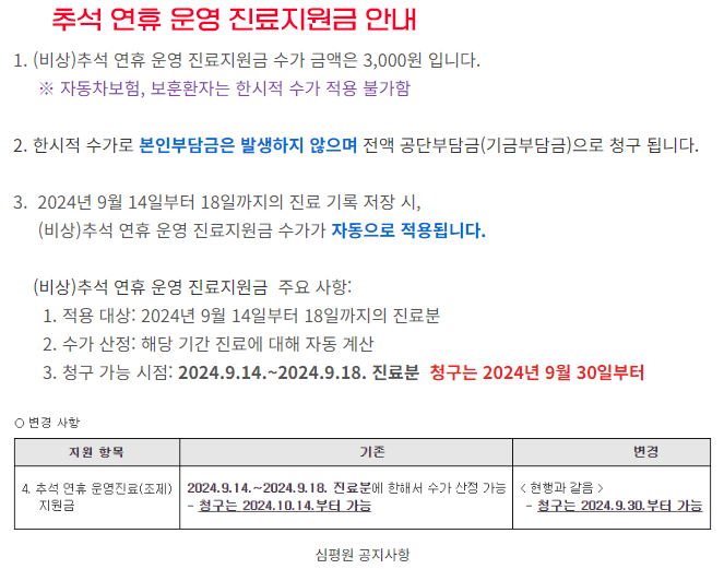 추석 연휴 운영 진료 지원금 지원 업데이트