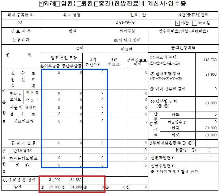 65세 시범첩약 정액 환자 영수중 수정 업데이트