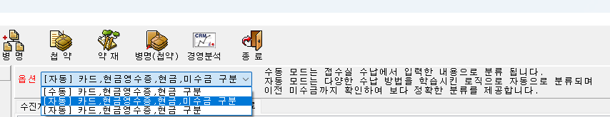 미수금 구분 제외 하고 자동 ‘카드, 현금영수증, 현금’ 구분 옵션을 추가했습니다.