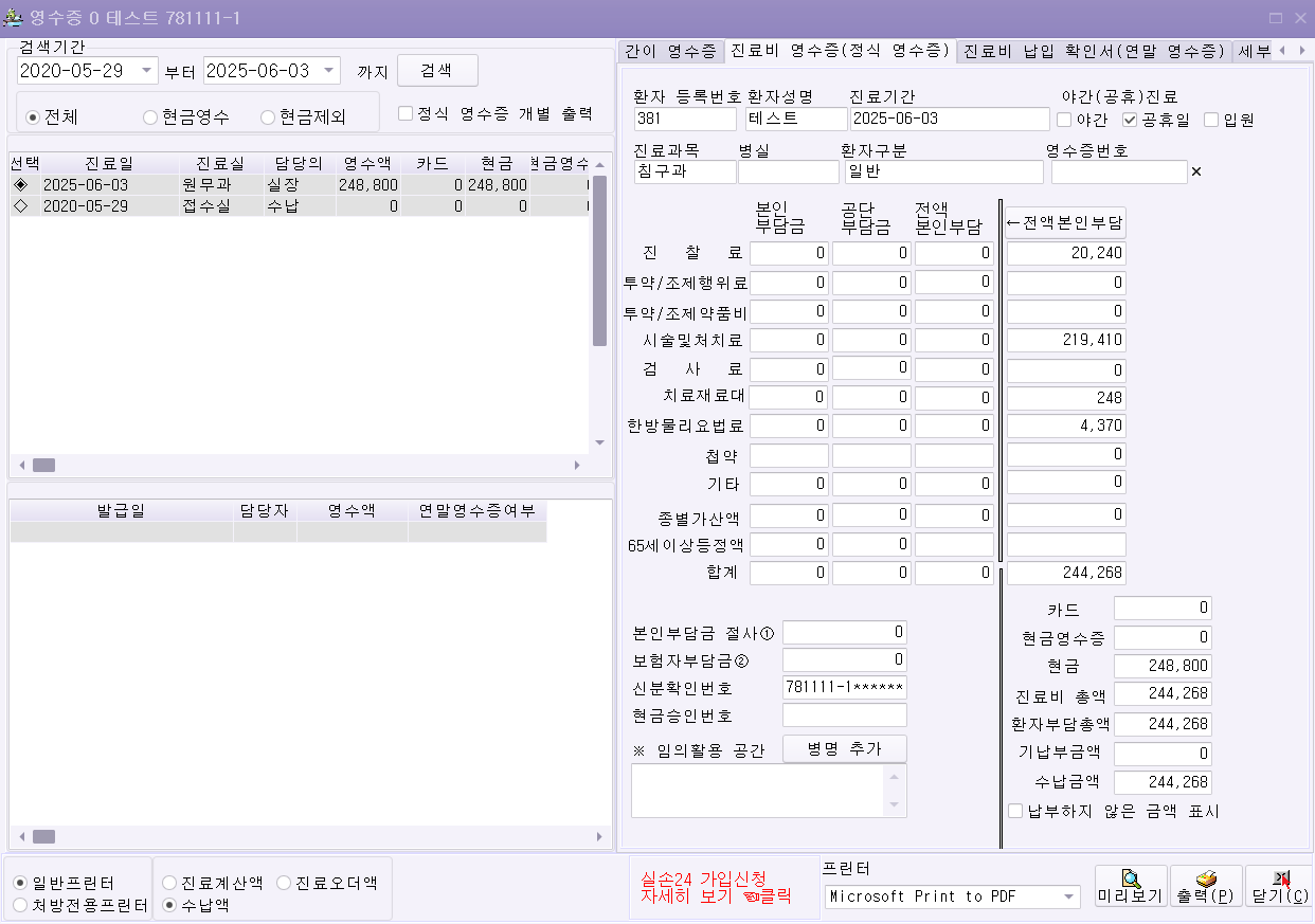 정식영수증 병명추가 기능 업그레이드