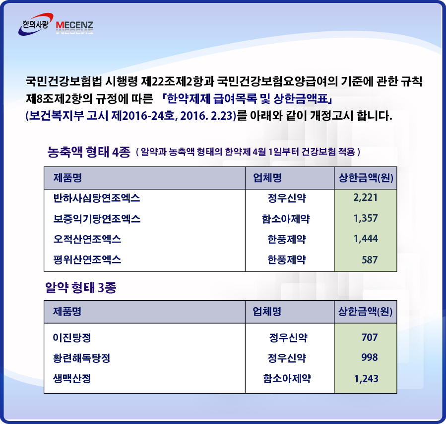 [팝업] 2016년 4월1일 한약제제 급여목록및 상한금액 안내